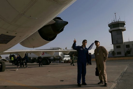 機務(wù)人員進(jìn)行飛機狀態(tài)檢查。