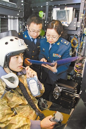 空軍某研究所科研人員與飛行員一起做飲水試驗(yàn) 李曉龍攝