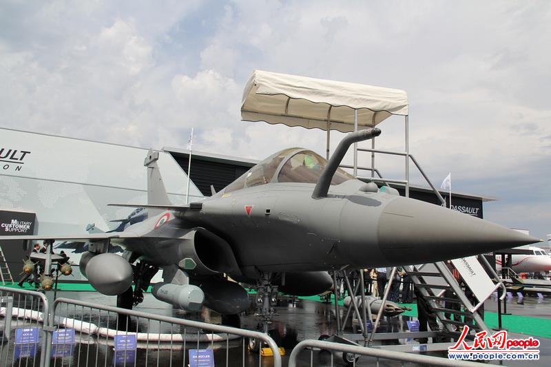 法國(guó)陣風(fēng)B型戰(zhàn)機(jī)掛彈展出,爭(zhēng)取國(guó)際用戶。人民網(wǎng)記者崔悅攝