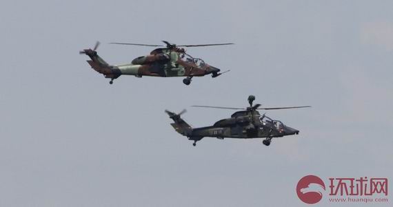 原文配圖:德法兩架虎式直升機飛行表演。