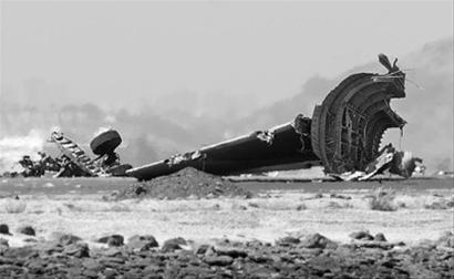 一些目擊者告訴當地電視臺,這架波音777-200型客機最初降落正常,后因起落架出現(xiàn)異常,機尾著地,一些飛機部件脫落,飛機偏離跑道,起火燃燒。