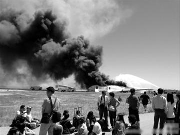 事發(fā)時,微博網友“@藝書yishu”正好在舊金山國際機場航站樓內候機,“就我們從航站樓里看到的來說,一開始落地后先是揚塵,然后有小股黑煙,但很快被撲滅。大約十分鐘之后才有第二次著火,濃煙滾滾。有人說看到落地前飛機身后就有很長一條亮線。 ”