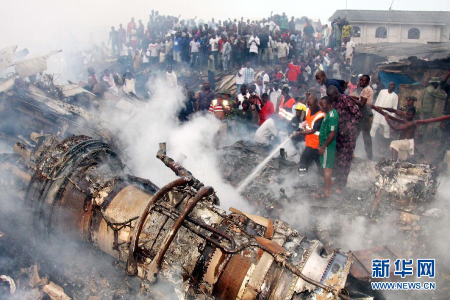 當(dāng)日,尼日利亞一架客機(jī)在拉各斯機(jī)場附近墜毀,機(jī)上153人全部遇難,空難還造成地面至少40人死亡。新華社發(fā)(通吉·奧巴薩攝)