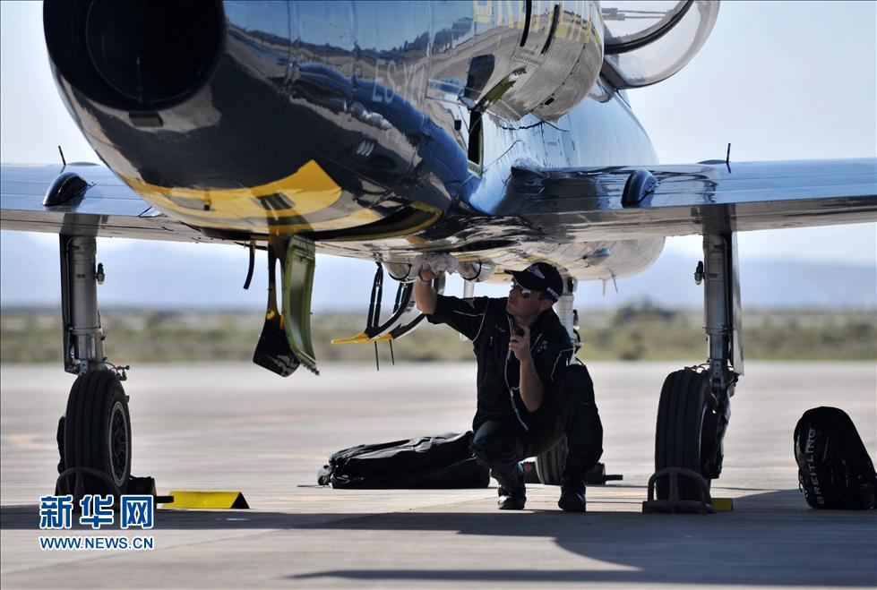 當日下午,國際著名的民用專業(yè)噴氣機特技飛行表演隊——歐洲百年靈飛行表演隊抵達嘉峪關國際機場。據(jù)了解,百年靈飛行表演隊將在8月13日上午在嘉峪關關城上空進行特技表演,之后機隊將飛往克拉瑪依進行表演。新華社記者 陳斌 攝