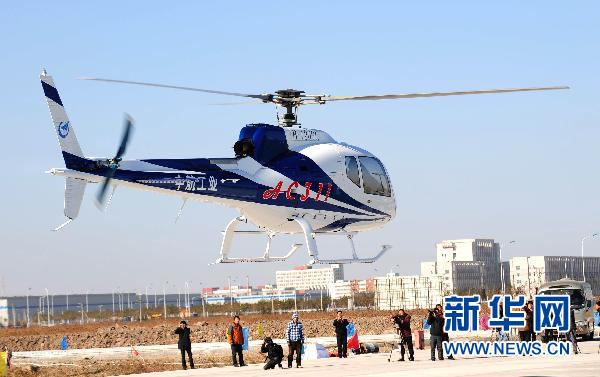 由中國航空工業(yè)集團公司自主研制的國產(chǎn)輕型多用途直升機AC311在中航直升機天津分公司完成總裝下線,于11月8日在天津成功首飛。AC311直升機的首飛成功、由天津總裝的首架AC301直升機實現(xiàn)客戶接機,標志著中國AC系列民用直升機產(chǎn)品開發(fā)邁上新臺階。據(jù)介紹,AC311直升機是性能優(yōu)越的2噸級輕型多用途直升機,可廣泛應用于飛行訓練、人員運輸、公安執(zhí)法、通信指揮、航拍攝影、醫(yī)療救護、電力巡線、護林防火、飛播滅蟲等任務。與AC311一同飛行的直升機是同一系列的輕型直升機AC301。AC301是天津基地完成總裝的首架直升機,將由中國飛龍通用航空公司接收并投入運營。新華社記者劉海峰攝