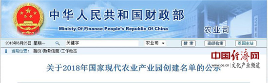 經(jīng)濟(jì)日?qǐng)?bào)-中國(guó)經(jīng)濟(jì)網(wǎng)北京6月25日訊 日前,財(cái)政部公示了2018年國(guó)家現(xiàn)代農(nóng)業(yè)產(chǎn)業(yè)園創(chuàng)建名單。公示的名單包括21個(gè)國(guó)家現(xiàn)代農(nóng)業(yè)產(chǎn)業(yè)園,公示期為6月22日至6月26日。