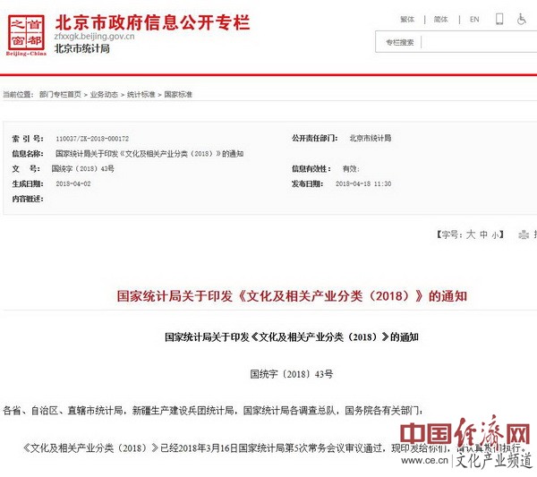 國家統(tǒng)計(jì)局關(guān)于印發(fā)《文化及相關(guān)產(chǎn)業(yè)分類(2018)》的通知