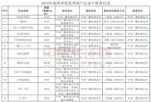 經(jīng)濟(jì)日?qǐng)?bào)-中國(guó)經(jīng)濟(jì)網(wǎng)北京5月25日訊 近日,國(guó)家廣播電視總局辦公廳公布《2019年第四季度優(yōu)秀國(guó)產(chǎn)紀(jì)錄片推薦目錄》,經(jīng)全國(guó)選送、評(píng)委網(wǎng)上審聽(tīng)審看、填寫(xiě)投票表并簽字等過(guò)程后,《安居中國(guó)》等87部作品從報(bào)送單位參與選送的272部紀(jì)錄片中脫穎而出,入選2019年第四季度優(yōu)秀國(guó)產(chǎn)紀(jì)錄片。中央廣播電視總臺(tái)、北京市廣播電視局、上海市廣播電視局等報(bào)送單位入選作品數(shù)量位居前列。