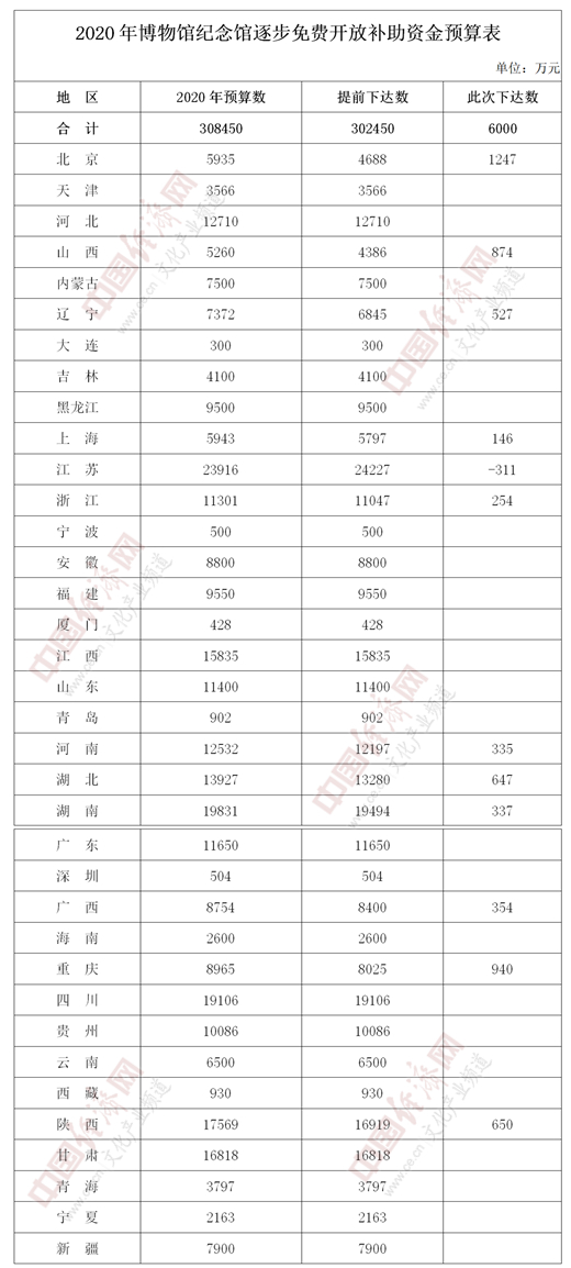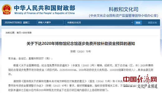 經(jīng)濟日報-中國經(jīng)濟網(wǎng)北京7月8日訊 7日,國家財政部官網(wǎng)發(fā)布《關(guān)于下達2020年博物館紀念館逐步免費開放補助資金預(yù)算的通知》(以下簡稱《通知》),《2020年博物館紀念館逐步免費開放補助資金預(yù)算表》同日公布。
