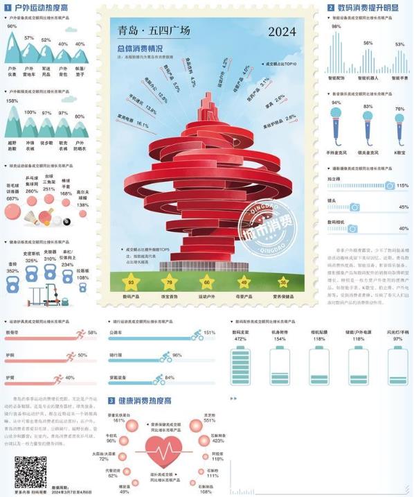 近年來,青島打造了多個(gè)旅游IP,每到節(jié)假日,棧橋、太平角、八大關(guān)、五四廣場等景點(diǎn),都會(huì)人頭攢動(dòng)。影音娛樂、攝影攝像類產(chǎn)品的增長,顯現(xiàn)出青島著名旅游城市的底色。人氣足,消費(fèi)旺,文旅深度融合進(jìn)一步激發(fā)了消費(fèi)活力。