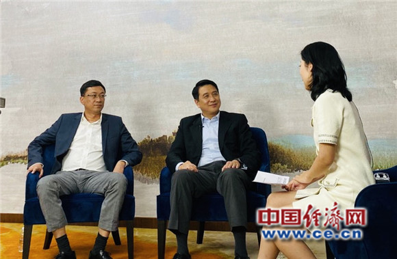 圖為國藥器械總經(jīng)理李楊(左)和GE醫(yī)療中國總裁兼CEO張軼昊接受經(jīng)濟日報-中國經(jīng)濟網(wǎng)記者采訪