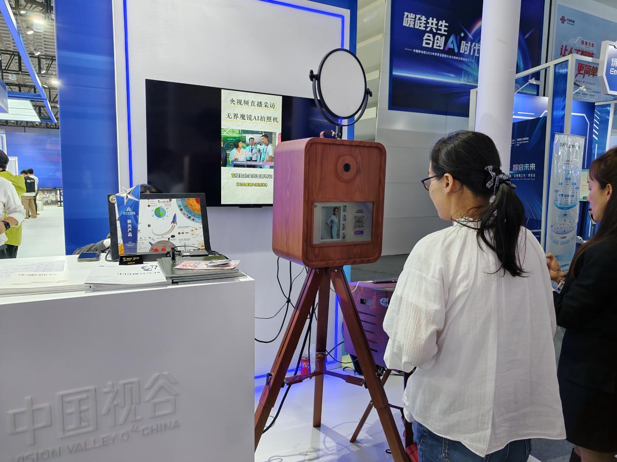 觀眾體驗中國視谷的無界魔鏡AI拍照機,其內置數(shù)百款風格迥異的寫真模板,依托AI視覺大模型,具備強大的影像生成能力。中國經濟網(wǎng)記者李方/攝