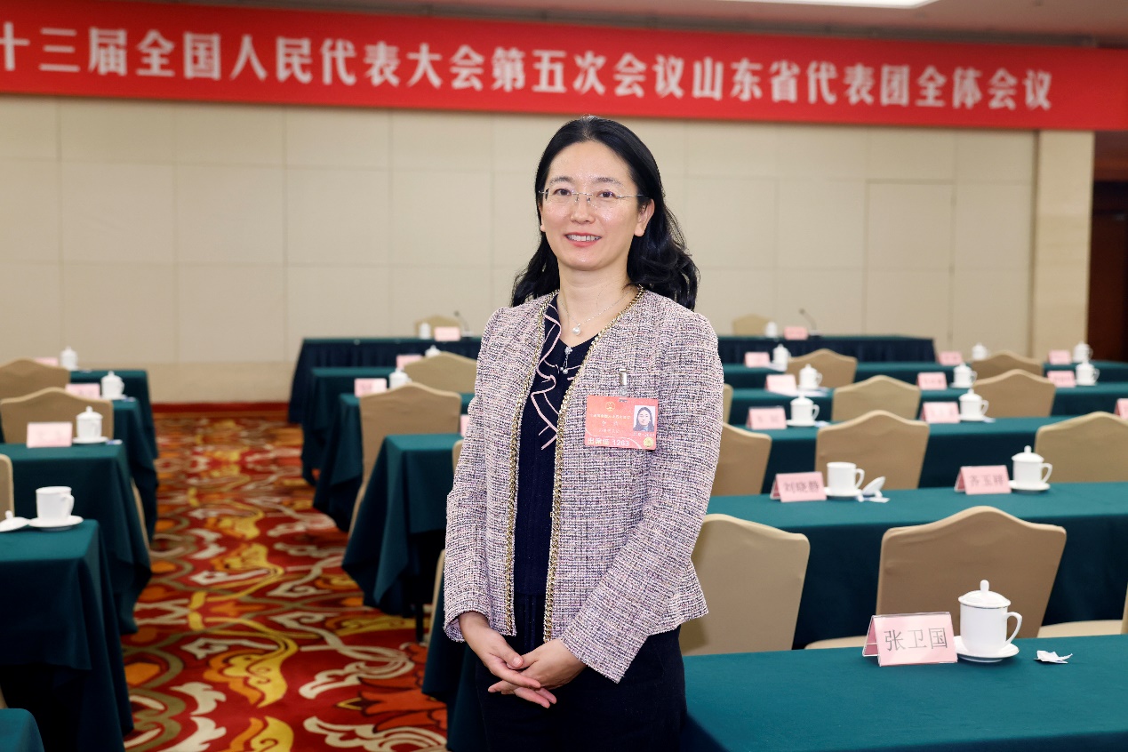 全國(guó)人大代表、齊魯制藥集團(tuán)總裁李燕在十三屆全國(guó)人民代表大會(huì)第五次會(huì)議山東省代表團(tuán)全體會(huì)議現(xiàn)場(chǎng)。圖片由受訪者提供。
