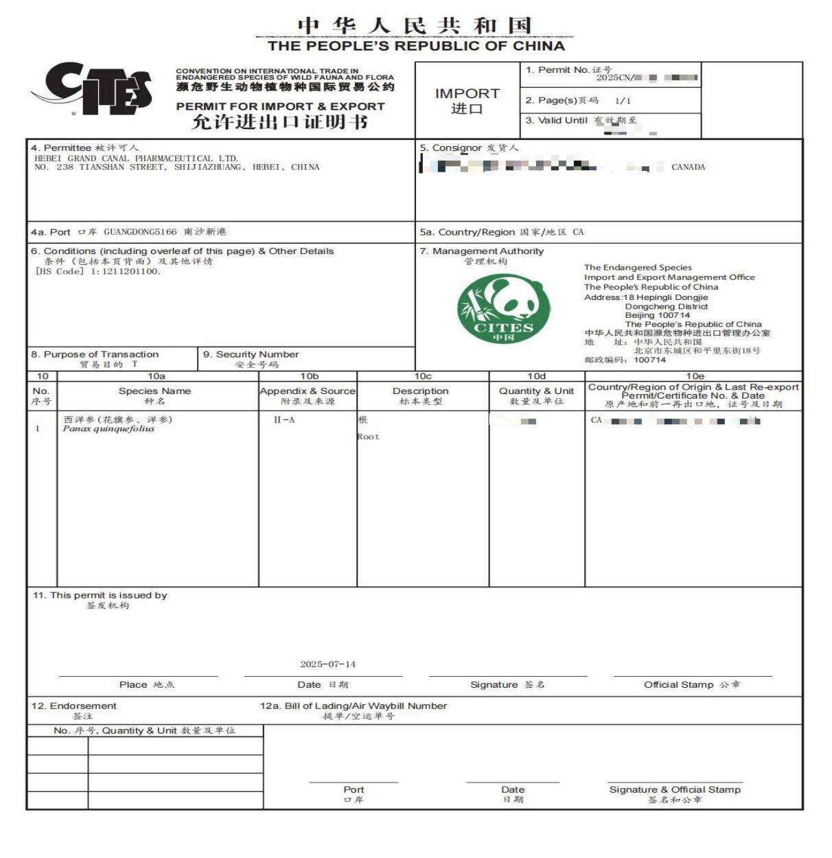 近日,從國家海關(guān)統(tǒng)計(jì)數(shù)據(jù)在線查詢平臺獲悉,以嶺藥業(yè)成功完成首批高品質(zhì)加拿大西洋參的進(jìn)口通關(guān),這也是河北省首個(gè)獲得高品質(zhì)加拿大西洋參進(jìn)口證書的企業(yè)。