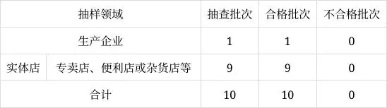 本次任務(wù)共10批次,實(shí)際抽到10批次,在生產(chǎn)企業(yè)和實(shí)體店中抽取,具體情況見表1。