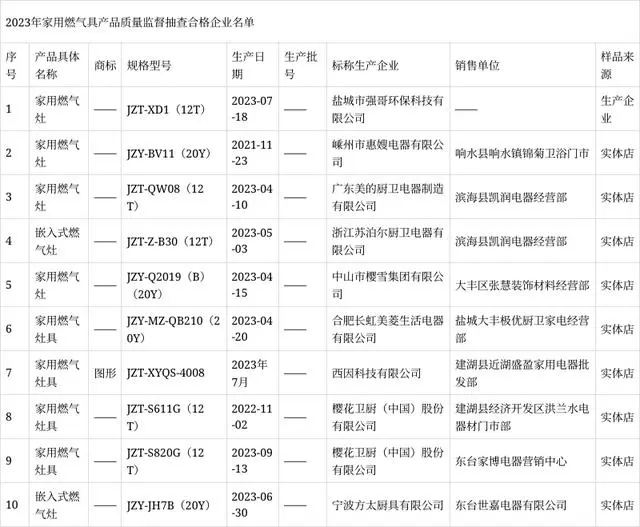 2023年度鹽城市市場監(jiān)督管理局委托南京市產(chǎn)品質(zhì)量監(jiān)督檢驗(yàn)院(南京市質(zhì)量發(fā)展與先進(jìn)技術(shù)應(yīng)用研究院)組織實(shí)施家用燃?xì)饩弋a(chǎn)品市級監(jiān)督抽查。本次抽查計劃10批次,抽到10批次,經(jīng)檢驗(yàn)合格10批次。