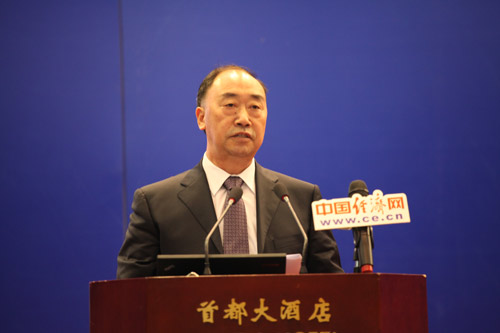 由中國(guó)道路交通安全協(xié)會(huì)、中國(guó)汽車(chē)技術(shù)研究中心和中國(guó)經(jīng)濟(jì)網(wǎng)共同主辦的“2013中國(guó)道路交通安全論壇”于8月29日在北京首都大酒店舉行。圖為經(jīng)濟(jì)日?qǐng)?bào)社社長(zhǎng)徐如俊致辭。中國(guó)經(jīng)濟(jì)網(wǎng) 裴小閣 攝影