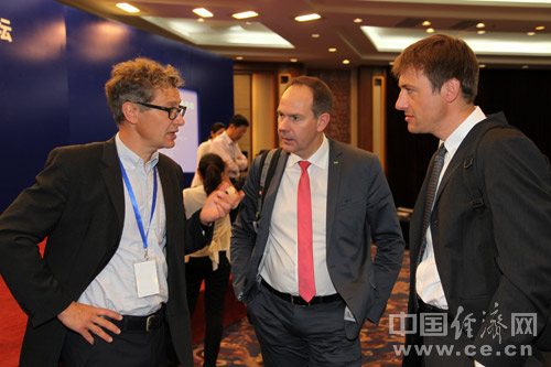 由中國道路交通安全協(xié)會(huì)、中國汽車技術(shù)研究中心和中國經(jīng)濟(jì)網(wǎng)共同主辦的“2013中國道路交通安全論壇”于8月30日在北京首都大酒店舉行。圖為歐洲新車安全評(píng)鑒協(xié)會(huì)主席安德魯斯克與參會(huì)嘉賓進(jìn)行交流。中國經(jīng)濟(jì)網(wǎng) 郝紅波/攝