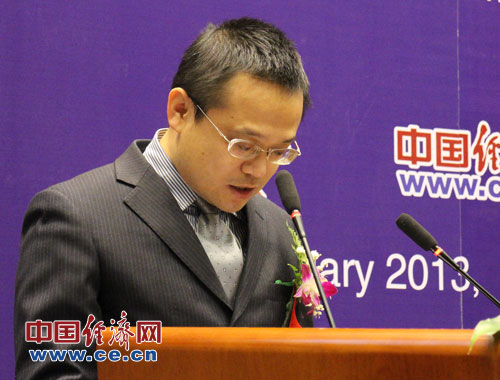 中國(guó)科學(xué)院預(yù)測(cè)科學(xué)研究中心1月26日(周五)在北京中科院數(shù)學(xué)與系統(tǒng)科學(xué)研究院舉辦“2013年中國(guó)經(jīng)濟(jì)預(yù)測(cè)發(fā)布與研討會(huì)”。圖為科學(xué)出版社經(jīng)濟(jì)管理出版分社社長(zhǎng)陳亮致辭。中國(guó)經(jīng)濟(jì)網(wǎng)楊瀟/攝影