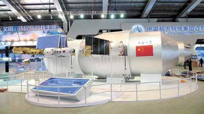 載人航天工程二期和三期任務(wù)。展廳中,最引人注目的莫過(guò)于天宮一號(hào)目標(biāo)飛行器1:1的模型及未來(lái)空間站模型。它們向觀眾形象地描摹了我國(guó)載人航天工程二期和三期的圖景。