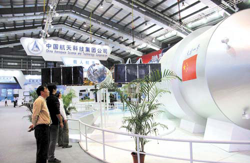 在第八屆中國國際航空航天博覽會中,中國航天科技集團公司推出代表月球探測工程最新成果的“嫦娥二號”衛(wèi)星模型,代表“北斗導(dǎo)航”工程、直徑達7米、蔚為壯觀的天地一體衛(wèi)星運行沙盤,1:1的“天宮一號”目標(biāo)飛行器模型、新一代運載火箭以及代表深空探測計劃的“螢火一號”衛(wèi)星模型等國家重大工程項目近100項新展品首次亮相。